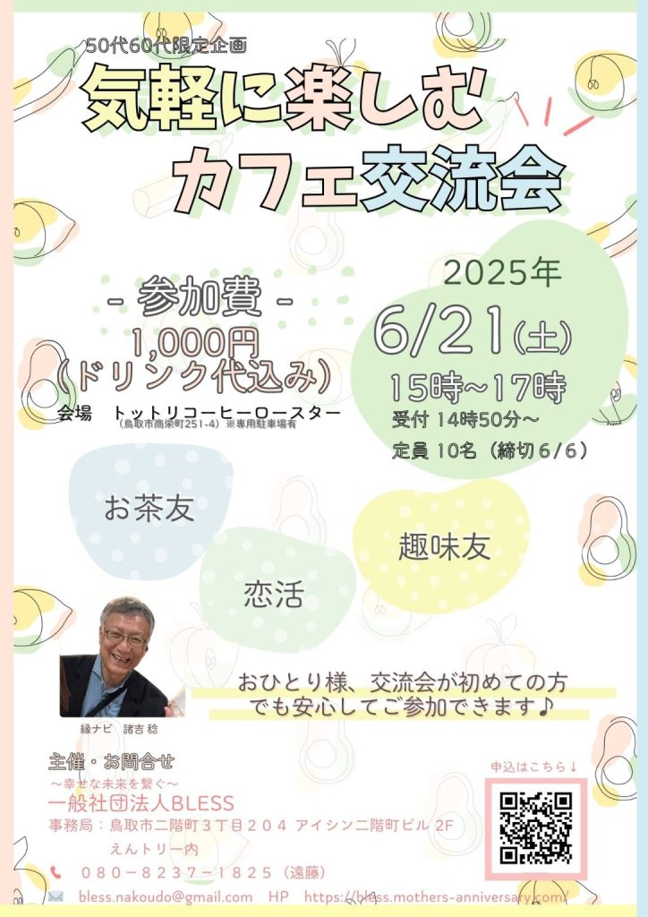 【50代・60代限定 カフェ交流会のお知らせ】
